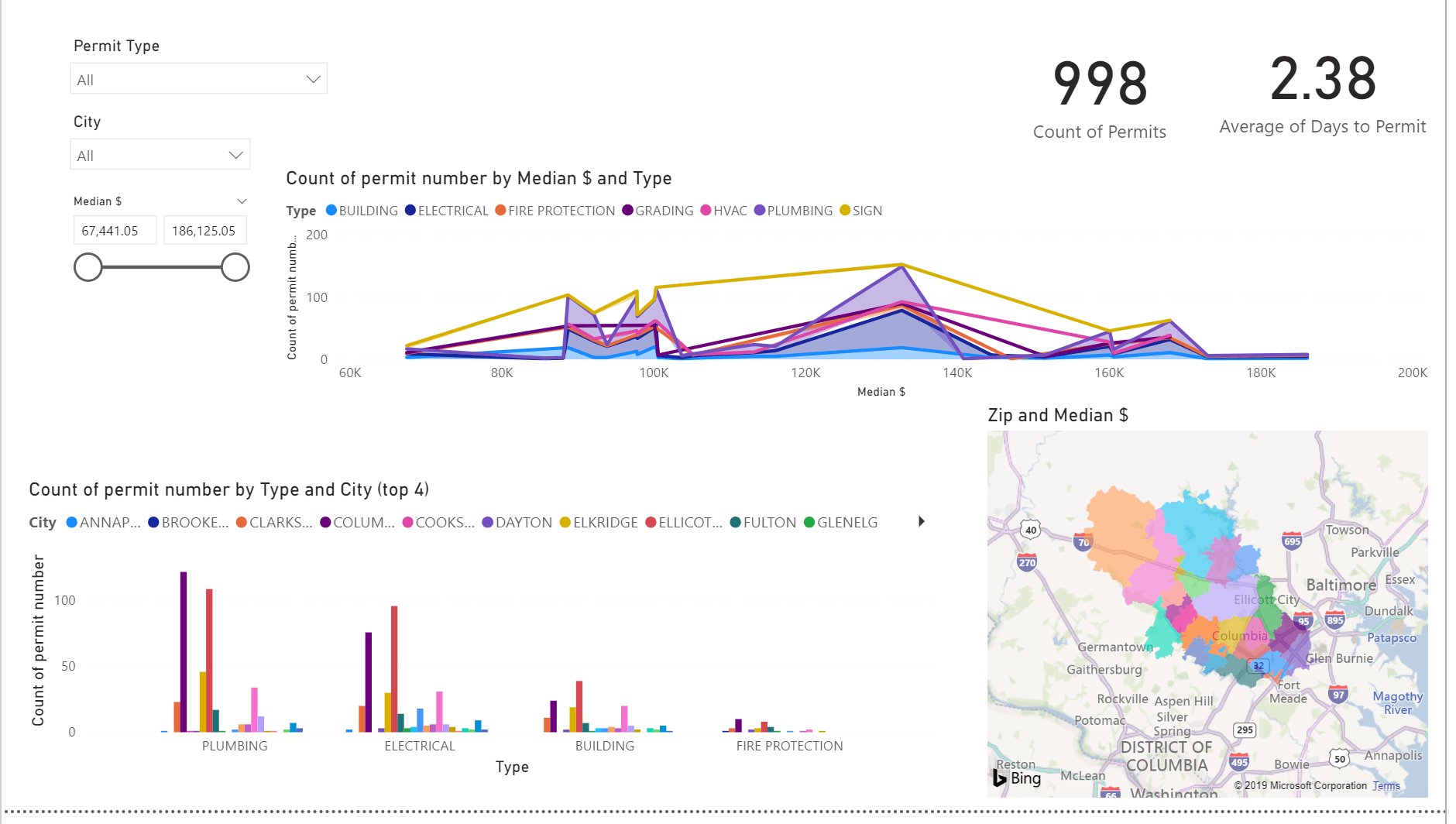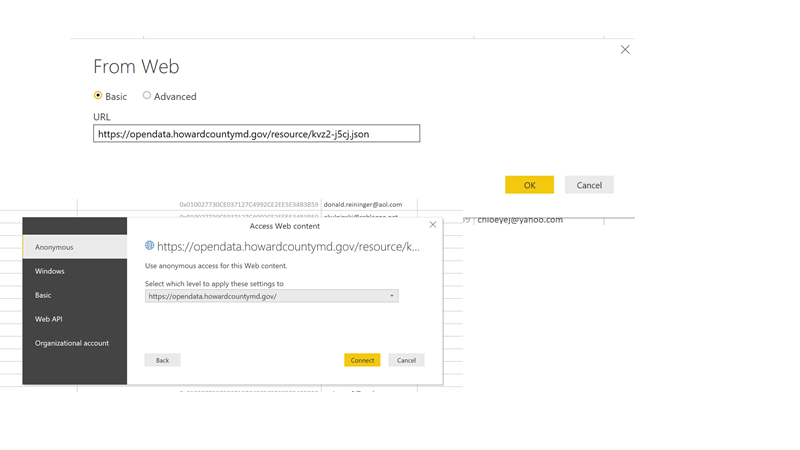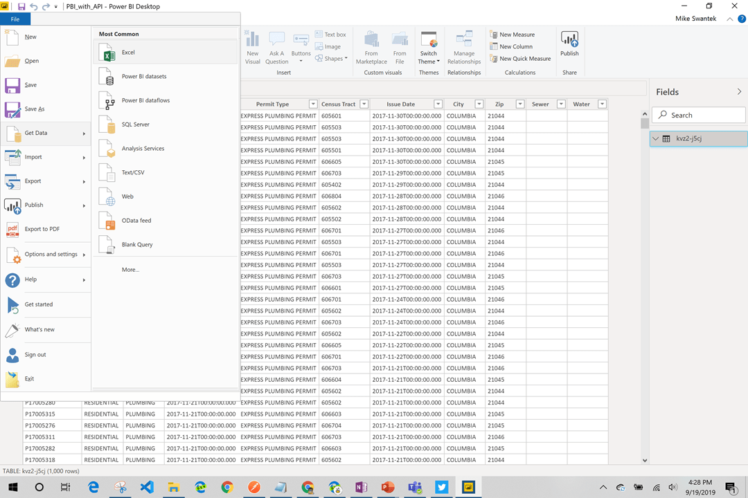 I will be bringing in a data set of all building permits requested and issued in the Washington DC area. I theorize that building permits will be issued and approved more often to those that live in an area with a higher median income. The key to this solution, is that it has to be a targeted API uri that will return the values you need. There are many open data API’s on the internet. One that I visit regularly is https://dev.socrata.com which compiles open data sources from states and cities in the USA. https://opendata.howardcountymd.gov/resource/kvz2-j5cj.json is the data source I selected to show the permits.
