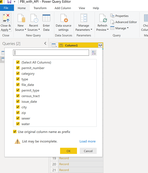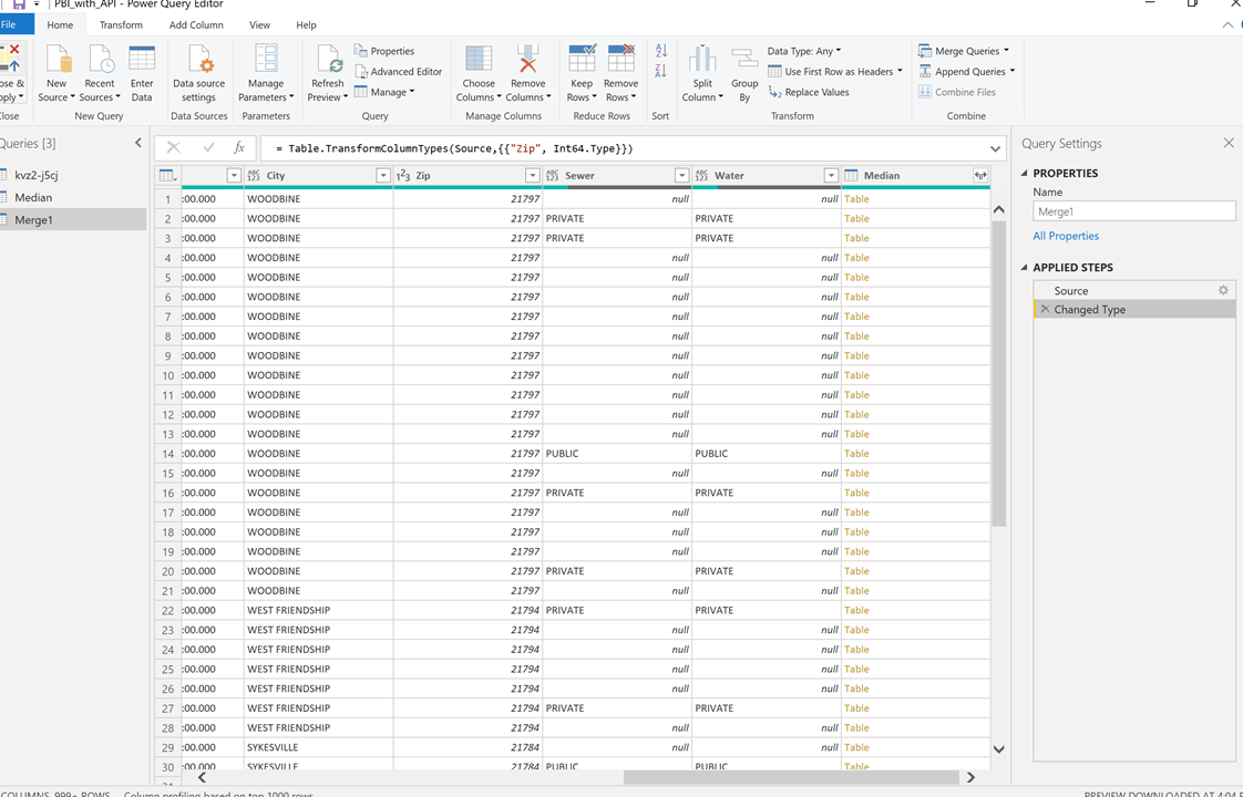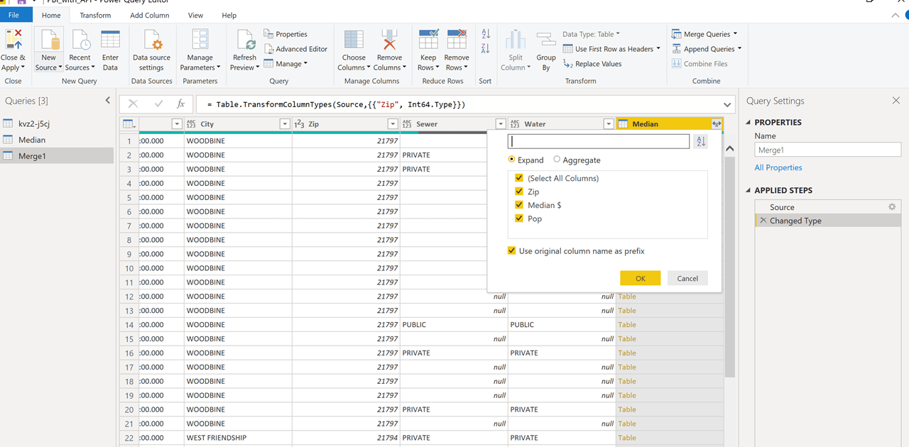 When creating the merged table, understand that the column may need to be expanded again as in the previous steps. Think of expanding the columns within the Power Query to be like parsing of the JSON file.