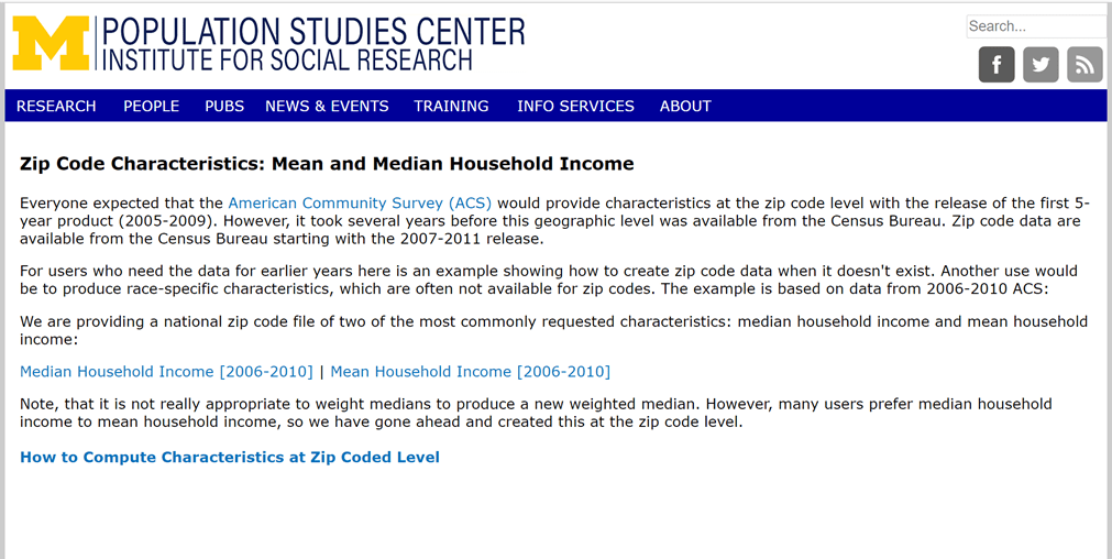 We are next going to add a static data set from a csv file. I am getting a list of US Zip codes with median home value and median income compiled by the University of Michigan. Download the csv file to your computer. You will need it in the next step.